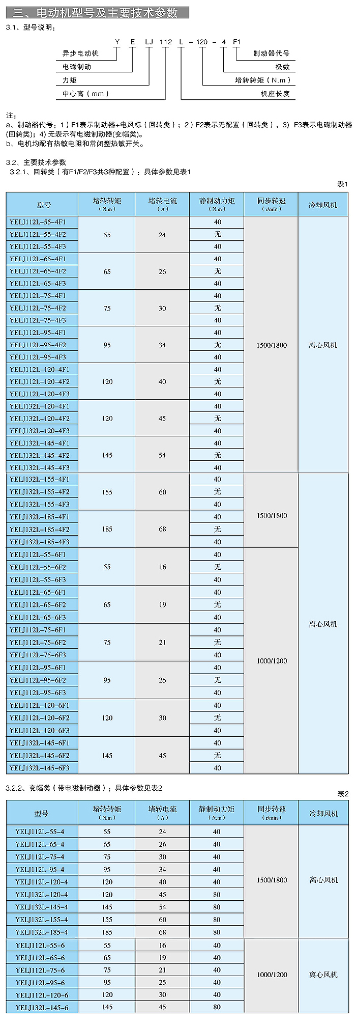 电动机型号及主要技术参数