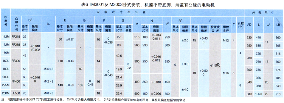 注:1)圆锥形轴伸按GB/T 757的规定进行检查。2)P尺寸为极限尺寸。3)R为凸缘配合面至轴伸肩的距离,其极限偏差包括轴的窜动。