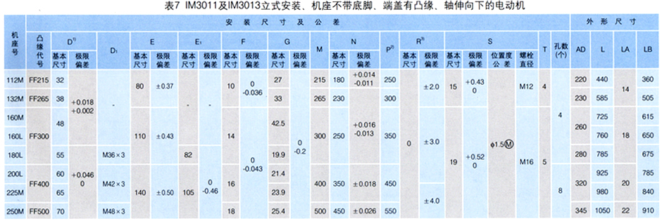 3.IM3011及IM3013立式安装、机座不带底脚、端盖有凸缘、轴伸向下的电动机YBZ、YBZS112M-250M