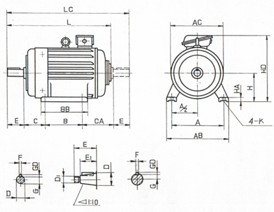 2.IM1001、IM1003 and IM1002、IM1004 Horizontal Foot-Mounted Motor Without Flange YZ112-250